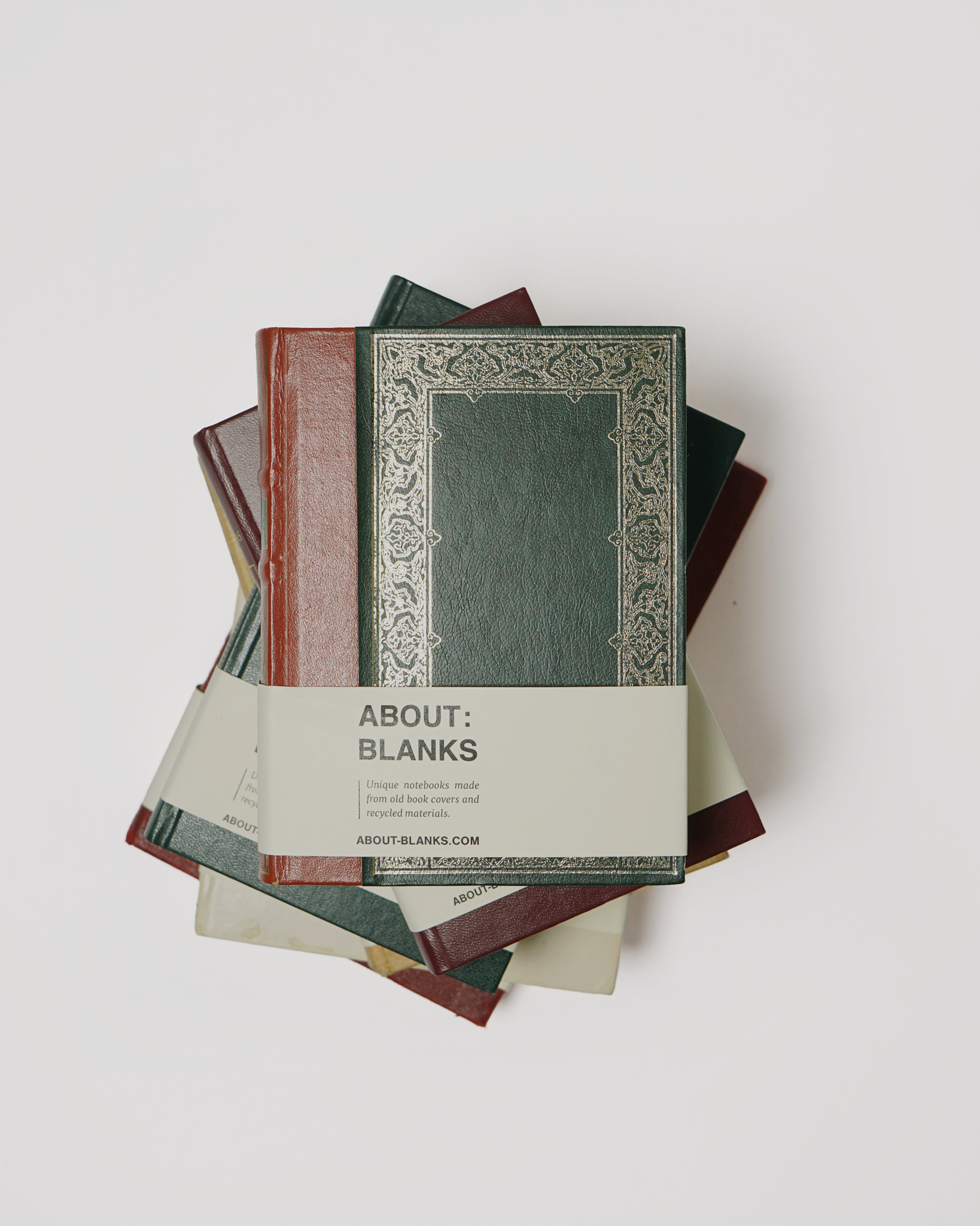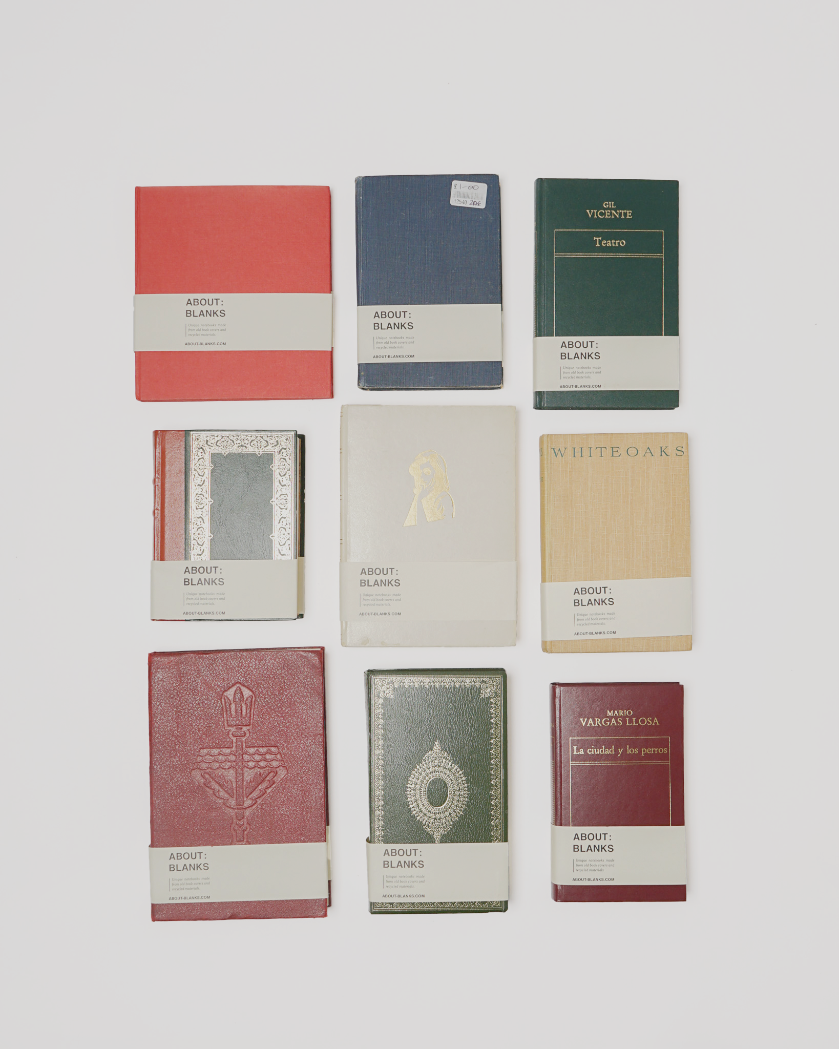 The original About Blanks sketch- & notebook About Blanks Original sketch- notebooks are unique, one of a kind pieces, handmade from old book covers. By removing the old inner works and refilling the covers with paper from responsible sources, new notebooks are created. ‘Not a book: A notebook!’