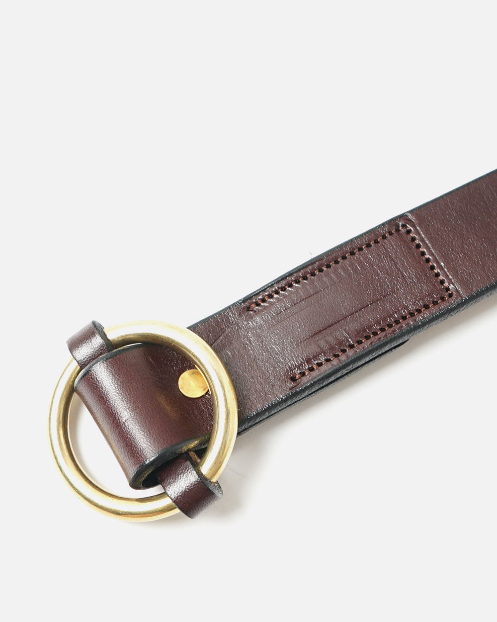 - 1-1/4” Bridle Leather O-Ring Belt is a plain belt featuring a solid brass o-ring buckle. This belt is designed with a sewn buckle closure.