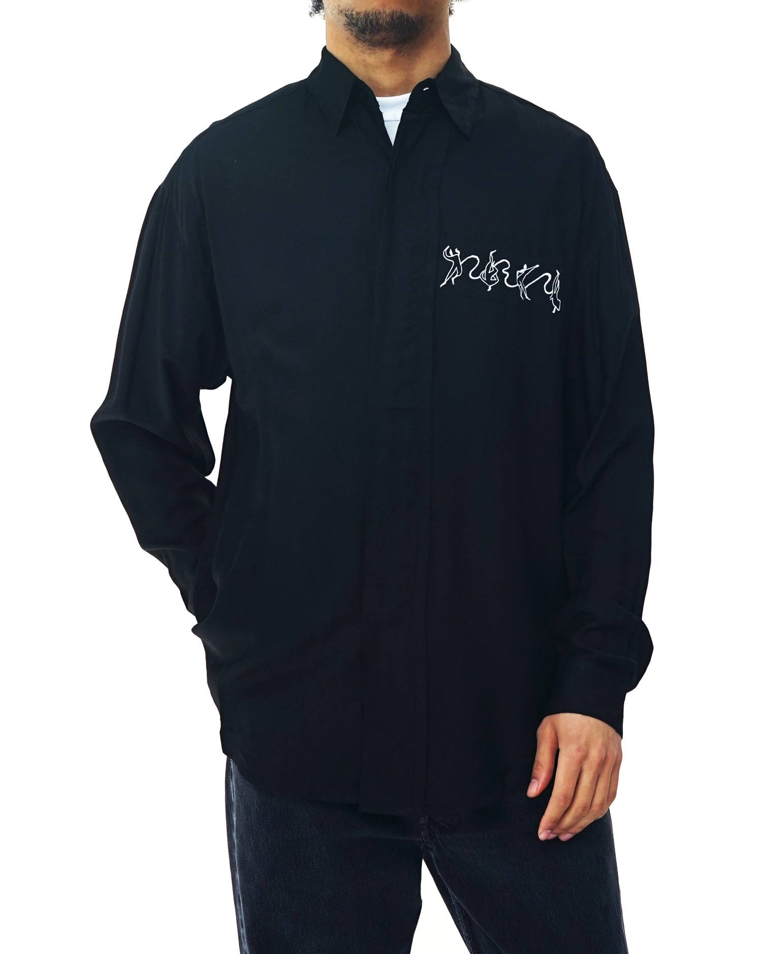 Front Fly Rayon Shirt w/ Embroidery